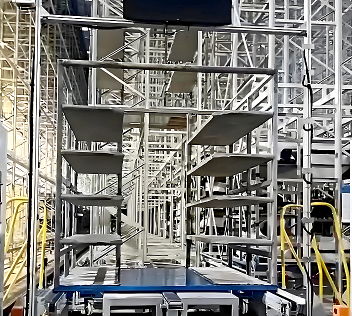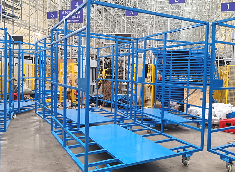 立庫工裝車是用于自動化立體倉庫(立庫)的物流周轉設備,主要用于存儲和搬運貨物,可與立庫的自動化系統無縫對接,實現貨物的高效存取。